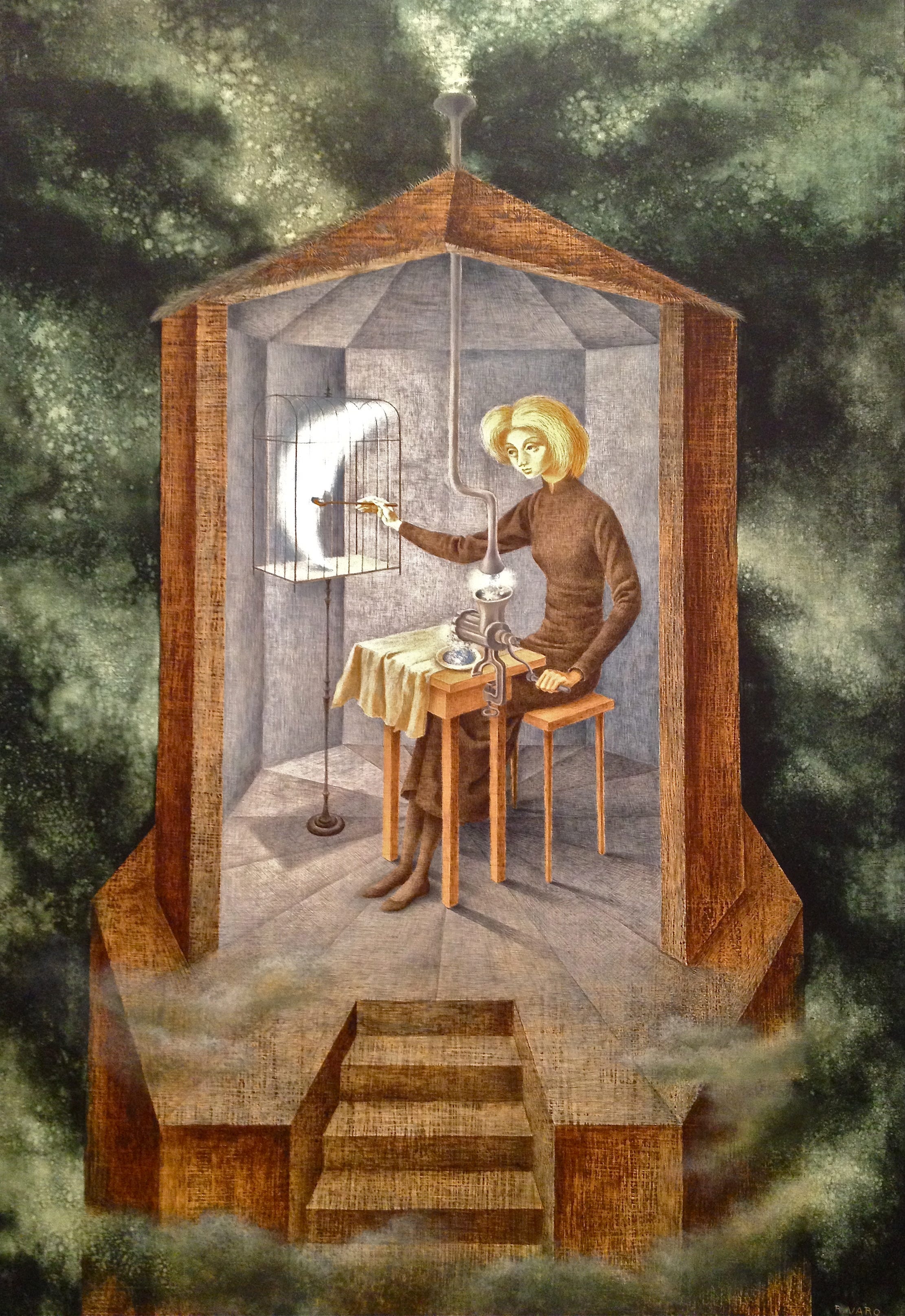 After ‘Star Maker’ by Remedios Varo The moon whines in his highchair, gurgling and garbling. Momma says, “Stay light for mama,” as she itches her eyes rosy. She rubs his back, rousing the gas from a resting place. Those soft bubbles fly high, tied up with pollution. Momma pays the man a pressed penny from the museum. Baby needs sustenance, needs a strong diet of doubt. The moon grows large and all his friends have abandoned him. Momma is ashamed of her little glutton, gobbling every word. She had hoped he would lose the dead weight, but failure came to stay.
