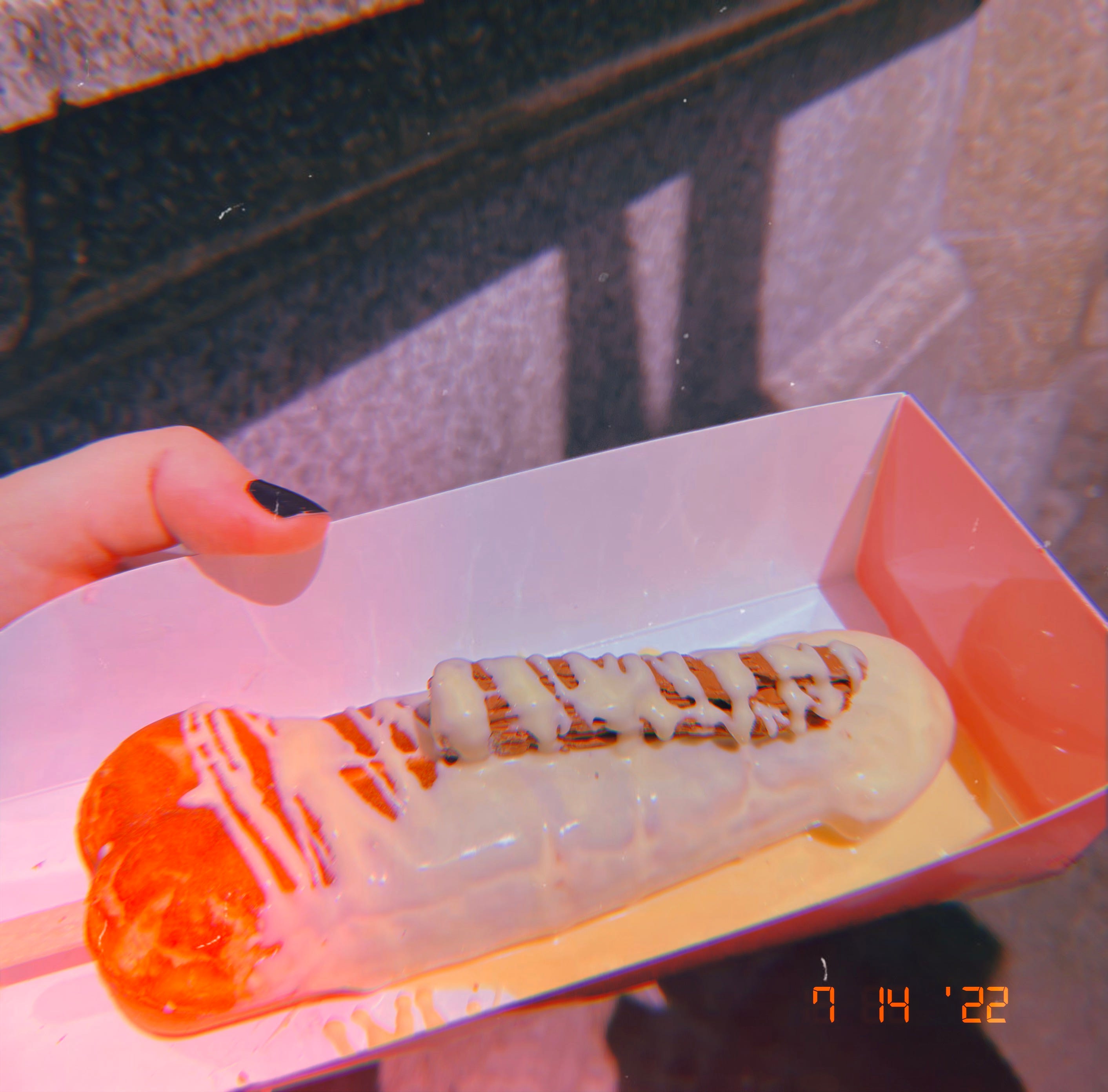 Suppressing laughter, I asked for the dick and was directed to the area where they drizzle chocolate sauce over your doughy phallus. On the first bite, I recognised just how awful it tasted. The white chocolate sauce was my saving grace.