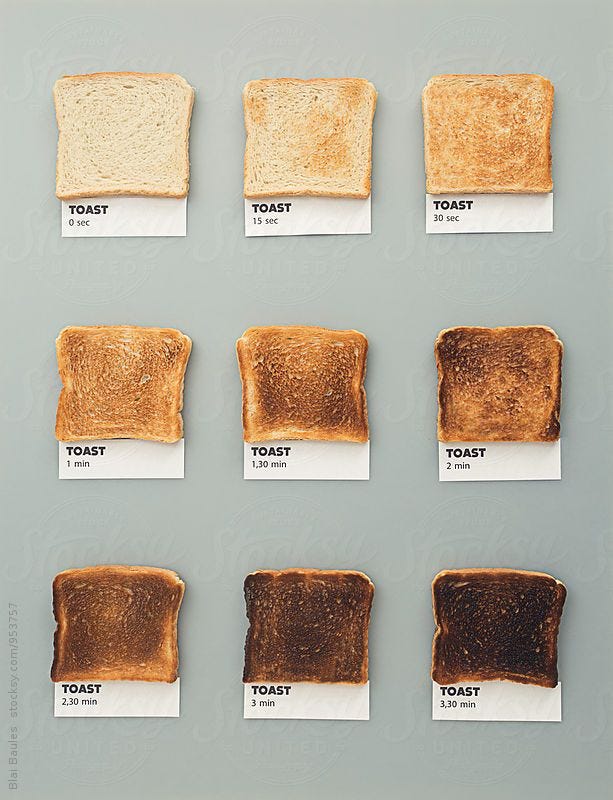 When it comes to toast, again, if we refer to the chart, I am between three and four. My preferred butter brands are Lurpak, Anchor, and Country Life; a generous helping of all.